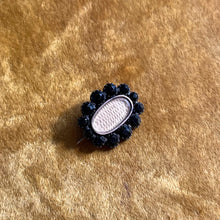 Lovely Georgian era hairwork brooch with very finely woven flaxen hair. The setting is solid silver and the stones are black faceted glass. Circa 1810-1840.