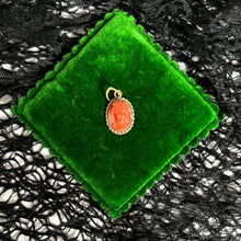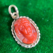 This fabulous, detailed red coral carved cameo charm dates from the late 19th century, circa 1870s-1890s.