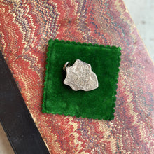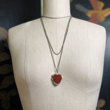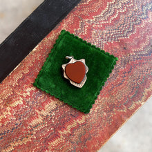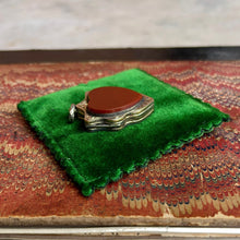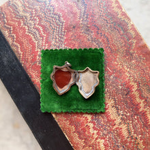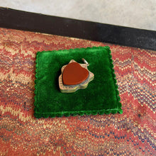 A beautiful gilt silver locket featuring a carnelian heart on one side and a hand engraved design on the other side. Circa mid-late 19th century.