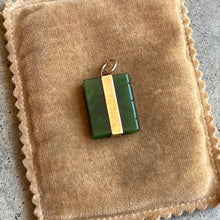 This beautiful and unusual book pendant was carved from jade and is encircled by a 14k gold band with a buckle motif.