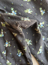 Beautiful dark blue cotton dress with light blue and white flowers circa turn of the century, very late 1890s to very early 1900s.