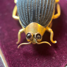 A very charming and unusual Victorian era gold beetle with a textured body and the cutest little face! The design appears to be depict a whirligig beetle.