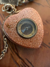 Lovely condition overall with some minor age-related wear. Small dark spot on one side of the goldstone heart. Some wear to two of the pyrite stones, as shown. Compass does move, but does not appear to function properly.