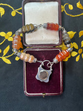 It was very difficult not to keep this piece! An incredible Victorian Scottish agate bracelet in sterling silver with a padlock clasp. The clasp is set with carnelian on one side and on the reverse is encased beautifully woven hair.